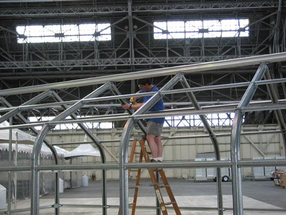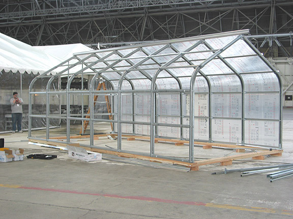 It also gave us a chance to give several hundred astrobiologists a sneak preview of what the greenhouse would look like: we assembled it inside the gargantuan Hangar 1 (as an exhibit) where the Second Astrobiology Science Conference was being held.