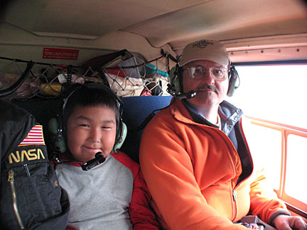 Joseph Atchealak and Keith Cowing inside the helicopter — Keith Cowing