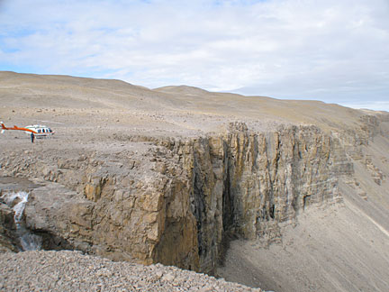 Our helicopter and pilot on the rim of Thomas Paine Canyon — Keith Cowing