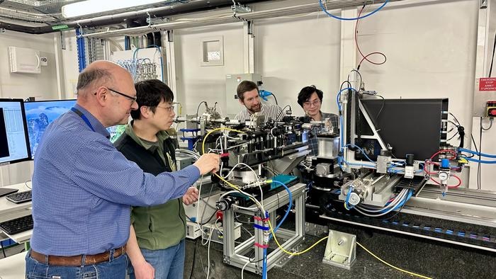 Leonid Dubrovinsky, Lianjie Man, Ilya Kupenko, Xiang Li at ESRF’s ID15B beamline Credit ESRF