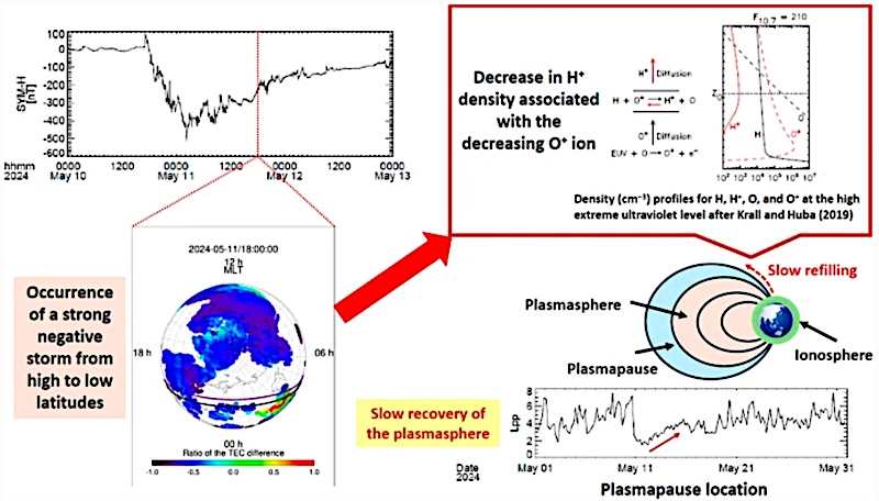 “The negative storm slowed recovery by altering atmospheric chemistry and cutting off the supply of particles to the plasmasphere. This link between negative storms and delayed recovery had never been clearly observed before,” Dr. Shinbori said.