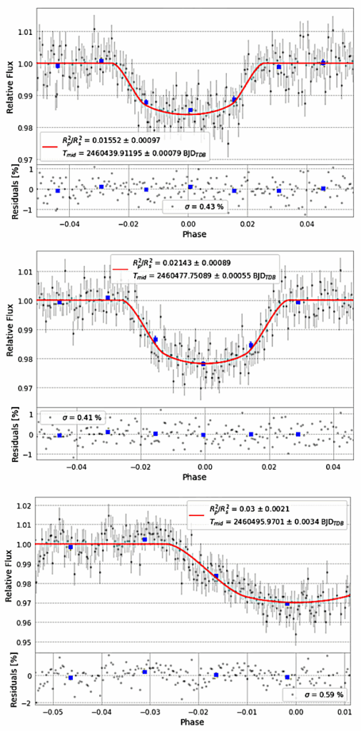 Light curves of the WASP-135 b transit processed with EXOTIC from 09 May 2024 (top), 16 June 2024 (middle), and 03 July 2024 (bottom).