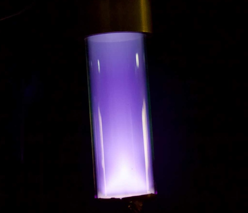 Cosmic dust gas mixture: Linda Losurdo mixed basic gases in a tube and subject them to electric bombardment to create cosmic dust analogues at the University of Sydney plasma physics laboratory.